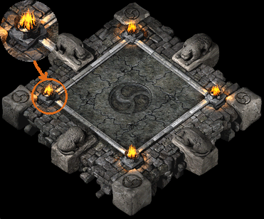 太极密室 进入太极密室后需要点燃4个火坛 才可攻击到太极公子, |