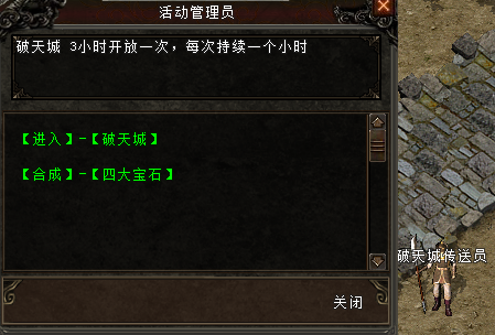 中央市场NPC[破天城传送员]每3个小时可以传送破天城副本(泰山北斗镜可进入)