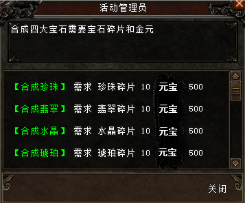 琥珀碎片10个 兑换 琥珀 1个 费用(500元宝)